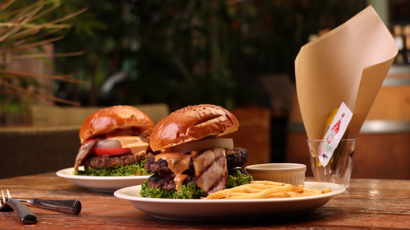 アメリカ産牛肉100%のジューシーなパティを2枚も使用したボリューム満点のハンバーガーや、パティスリーフレールのケーキをお楽しみいただけるケーキセットをご用意いたしました。